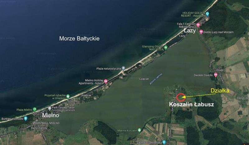 Zdecydowanym atutem działki jest jej położenie, zaledwie 1 km od przystani ja jeziorze Jamno. Z przystanie jest ok. 2 km przez jezioro do plaży morskiej. Przy działce energia elektryczna. Inne media do uzgodnienia z instytucjami branżowymi.