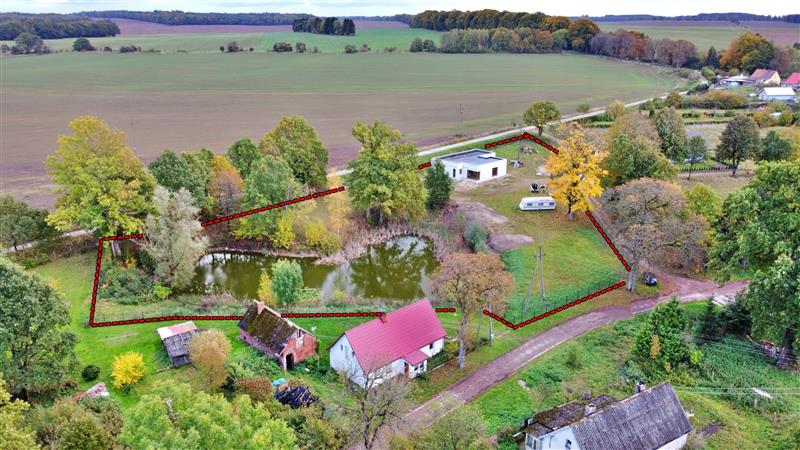 Nieruchomość posadowiona na dwóch działkach o łącznej powierzchni: 6700 m2 (na działkce o powierzchni 1800 m2 - posadowiony jest dom oraz na działkce o powierzchni 4900 m2- znajduje się staw).