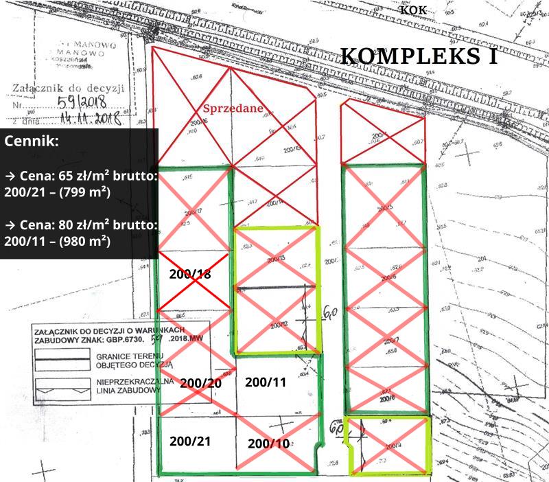 Cena kompleksu (nr 1, 2 i 3): 25 zł netto/m2 z warunkiem zakupu wszystkich działek.