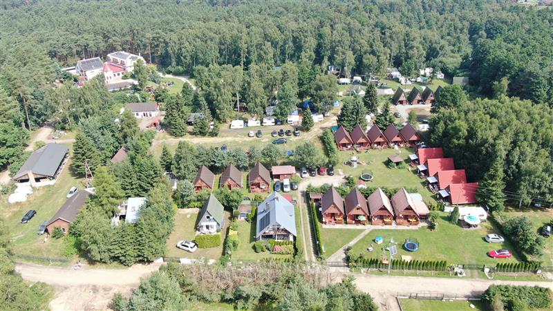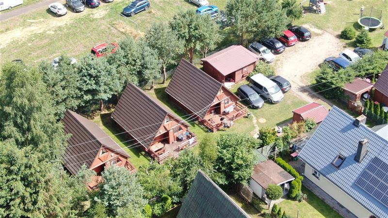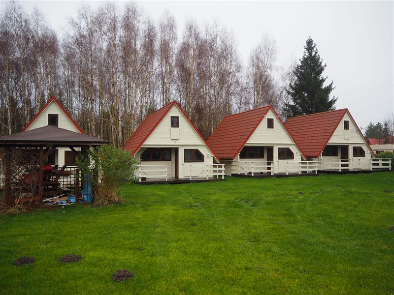 12 domków jest przeznaczonych pod wynajem, jeden domek słuzy do obsługi ośrodka, pełni rolę recepcji i magazynu. Domki są 6-osobowe, łącznie na terenie ośrodka może nocować 72 osoby. Domki są bogato wyposażone i estetycznie urządzone. W każdym domku jest salon z aneksem kuchennym, jedną lub dwiema sypialniami i łazienką z prysznicem. W aneksach kuchennych jest lodówka, płyta ceramiczna, pochłaniacz, czajnik elektryczny i niezbędne naczynia kuchenne. W domkach jest woda, prąd z siłą, naziemna telewizja cyfrowa i WiFi. Do każdego domku jest przygotowane jedno miejsce parkingowe, parking leży na terenie ośrodka, jest on całodobowo monitorowany. Parking przygotowany na 15 aut.