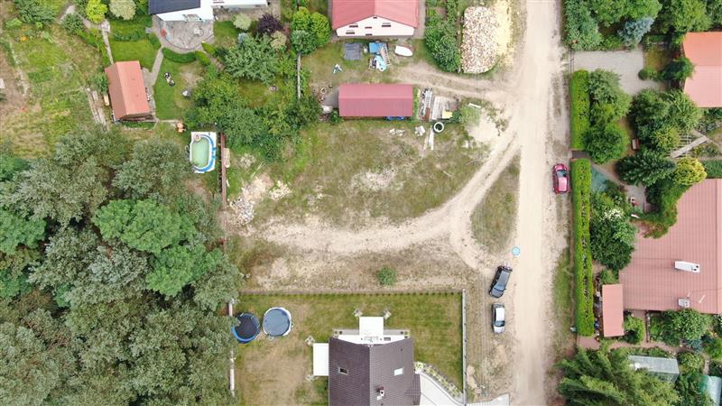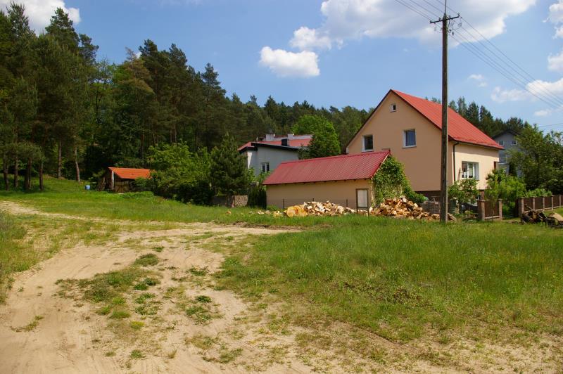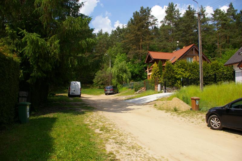 Działka w pełni uzbrojona (woda, prąd i kanalizacja). Dojazd drogą asfaltową, ostatni odcinek 30 m drogą gruntową.