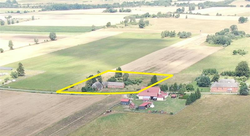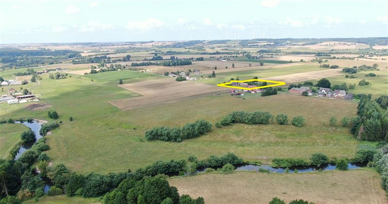 Miejsce idealne do prowadzenia agroturystyki, usytuowane na wzniesieniu, w otoczeniu lasów, w odległości 300 metrów od rzeki. Jest możliwa odbudowa całego zespołu zabudowań ukształtowanych w czworobok.
