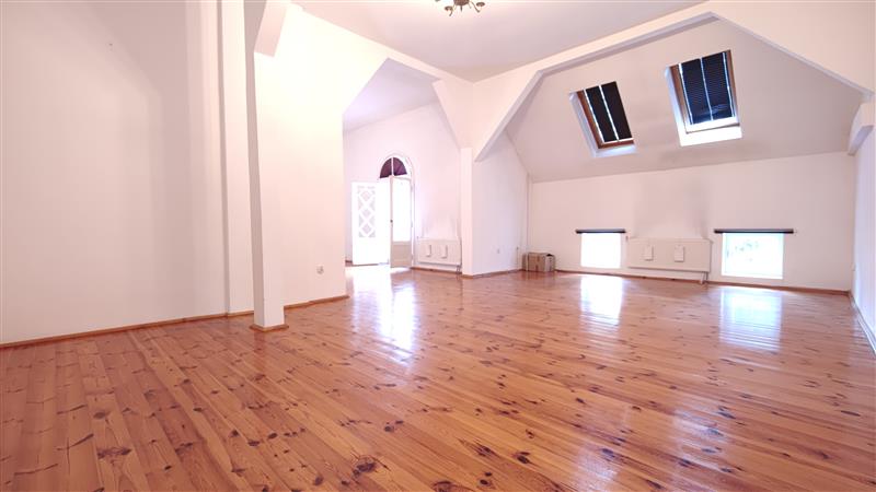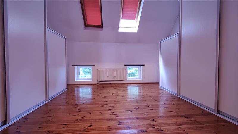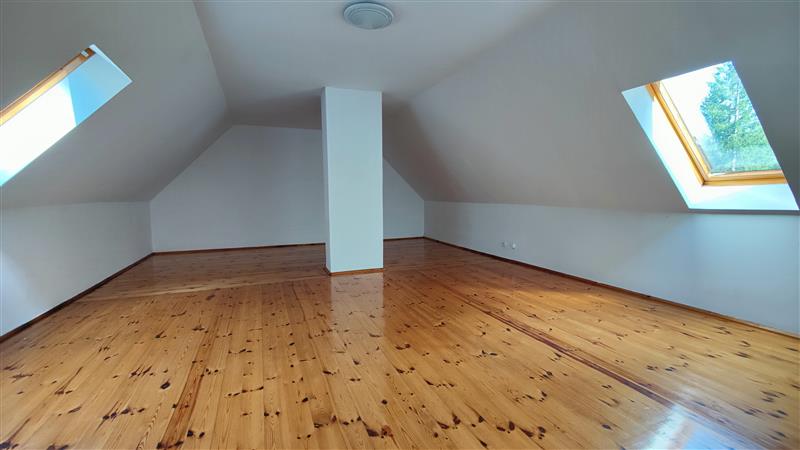 Na piętrze czeka na Ciebie aż 7 pokoi, 3 łazienki. Każdego ranka możesz zażywać kąpieli słonecznych na rozległym balkonie bezpośrednio przyległym do sypialni a w lecie i jesienią możesz wypatrywać prawdziwków wychylających swe kapelusze spod trawy pod wspaniałymi, wyniosłymi daglezjami. A to jeszcze nie wszystko! Pod całością budynku znajduje się podpiwniczenie o powierzchni około 240 m2, które zapewni dodatkowe miejsce do przechowywania czy realizacji własnych pomysłów. Trzy odrębne wejścia dają wiele możliwości wykorzystania nieruchomości jednocześnie np. jako mieszkalnej i jednocześnie pod wynajem.