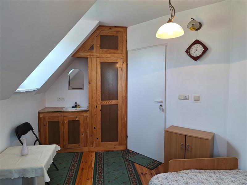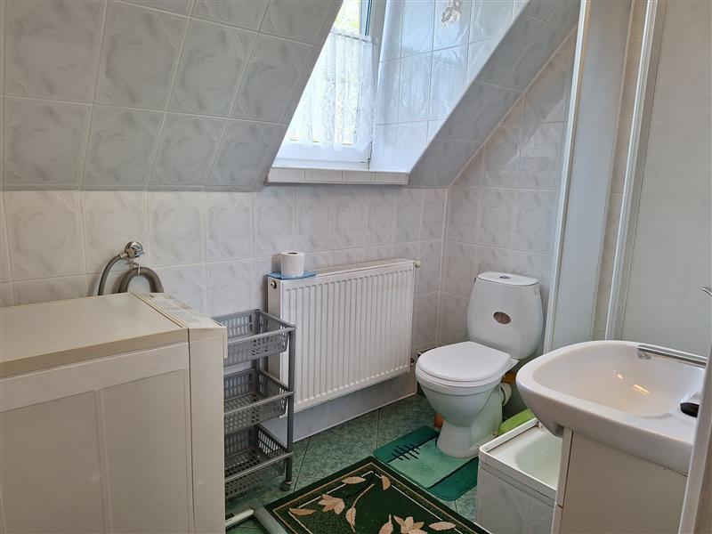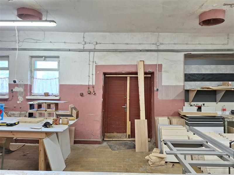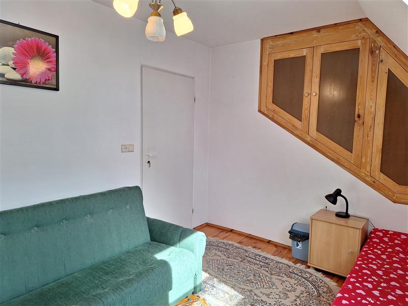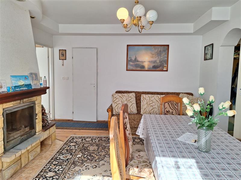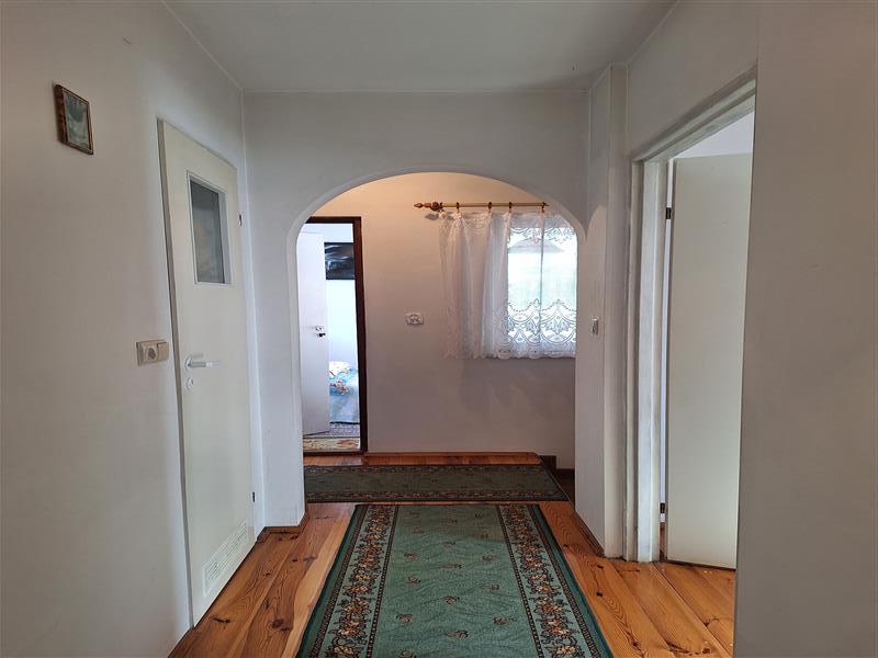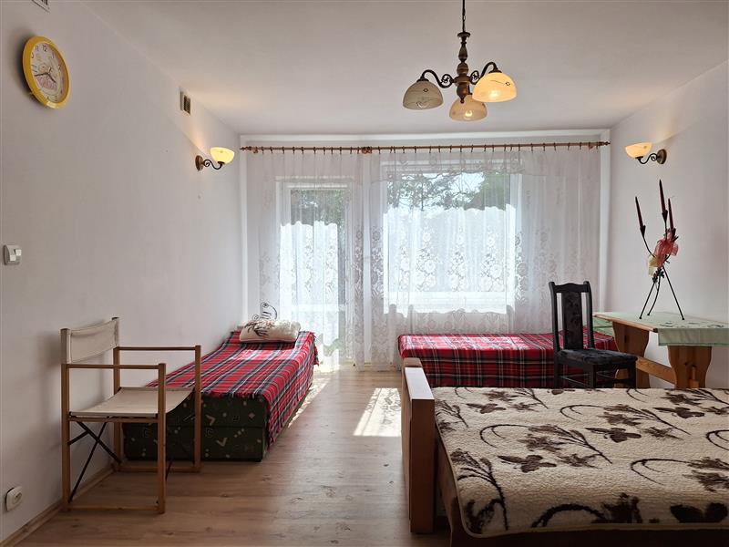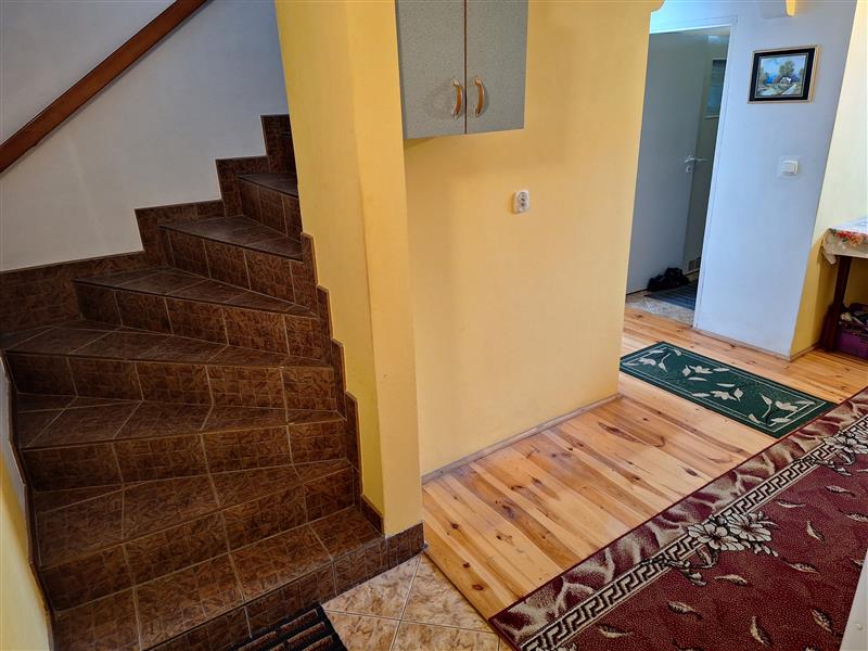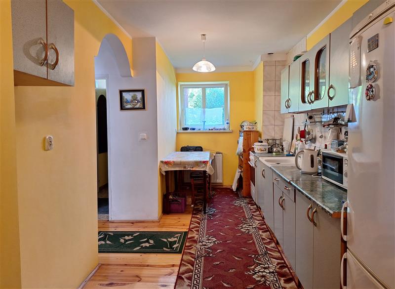 Dom z 5 pokojami z możliwością zamieszkania i jednoczesnego wynajmu. Na parterze budynku znajduje się salon z kominkiem, duży pokój, kuchnia z dostępem do rozległej części gospodarczej, łazienka oraz spiżarnia. Na piętrze znajdują się trzy pokoje, dwie łazienki, pomieszczenie przechodnie, oraz bardzo przestronny taras (40 mkw.) Z piętra jest wejście na poddasze (schody strychowe). Powierzchnia użytkowa domu to około 120 mkw. Na parterze znajdują się pomieszczenia po dawnej zlewni mleka o sumie powierzchni około 95 mkw. - możliwość adaptacji na dodatkową funkcję, bądź kolejne pokoje. Dodatkowo drewutnia o pow. 40 mkw.