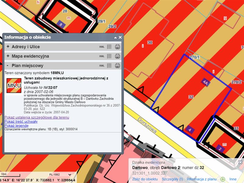 Działka mieści się przy głównej ulicy prowadzącej z Darłówka zachodniego do morza. Aktualnie znajduje się na niej tymczasowy obiekt budowlany w postaci hali namiotowej, w której prowadzona jest sala zabaw dla dzieci. Media: prąd, woda, gaz i kanalizacja na działce, teren płaski i równy, częściowo ogrodzony.