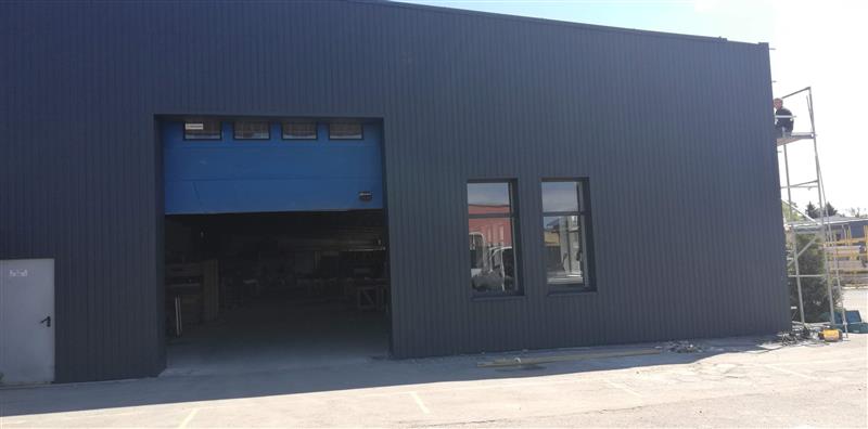 Hala po remoncie - nowa posadzka o zwiększonej wytrzymałości, nowa elewacja.
