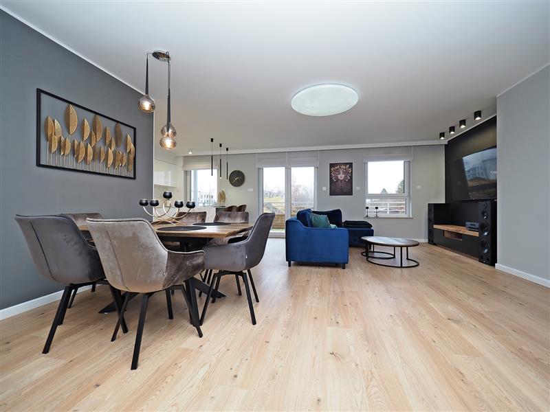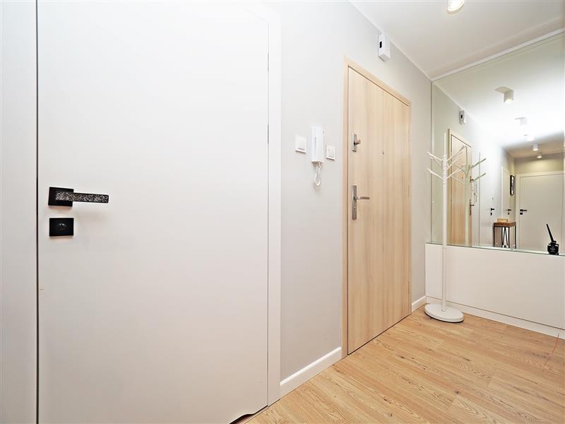 Z innych atutów mieszkania należy wspomnieć o przestronnej kuchni pod wymiar z blatami ze spieku kwarcowego, sprzętem AGD wysokiej klasy oraz wygospodarowanym miejscu na pralkę i suszarkę. Na tarasie wypoczynkowe meble ogrodowe.