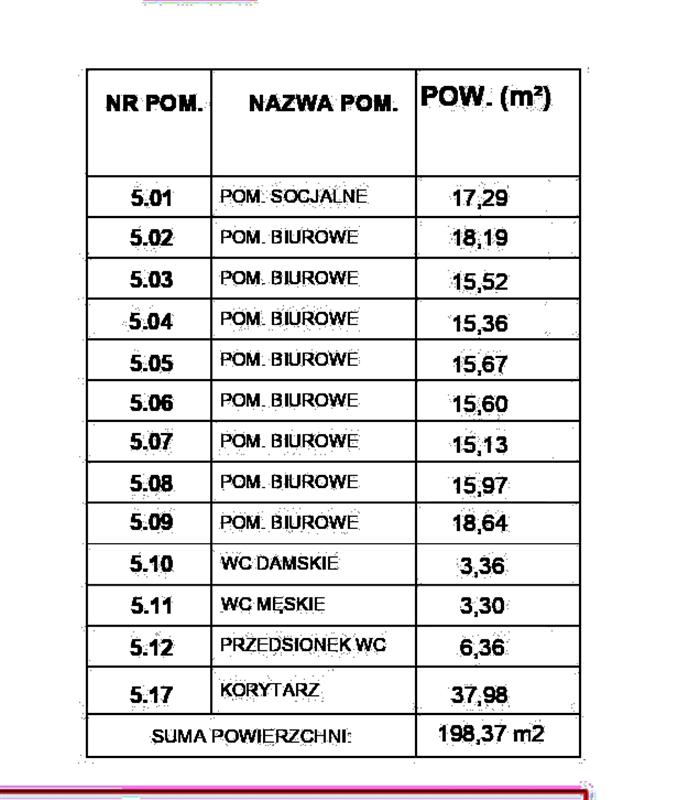 Powierzchnia lokalu wynosi 198,37 m2 i obecnie obejmuje: