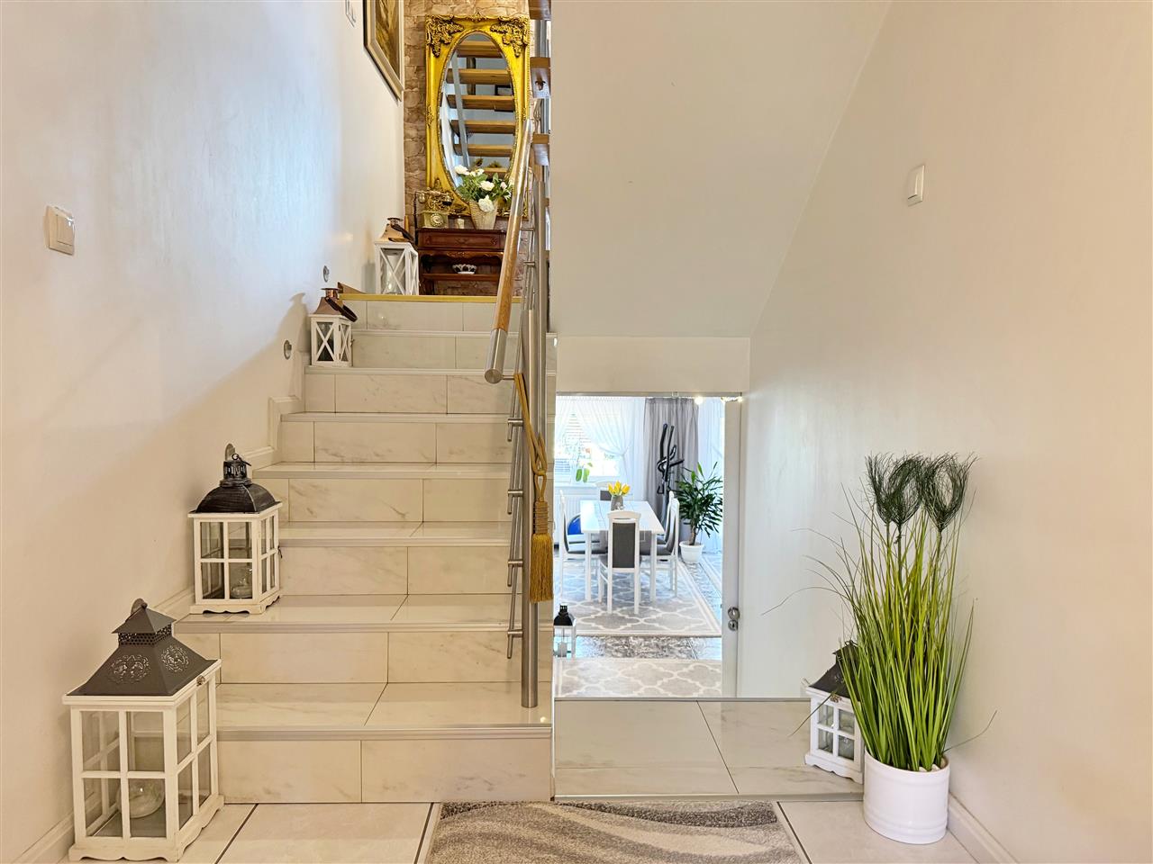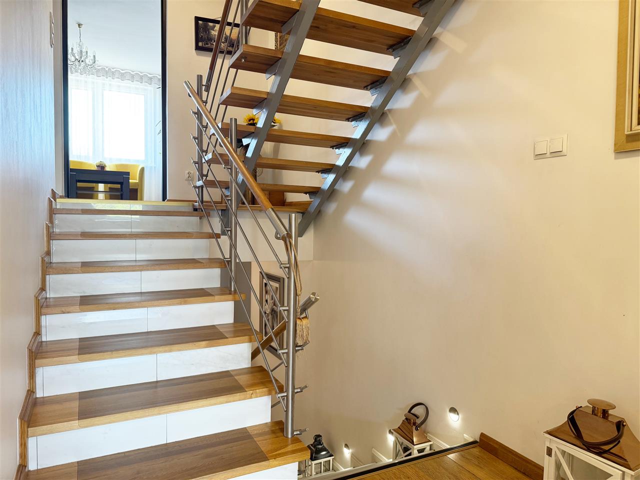 - Schody wewnętrzne- obłożone terakotą i deską z balustradą.