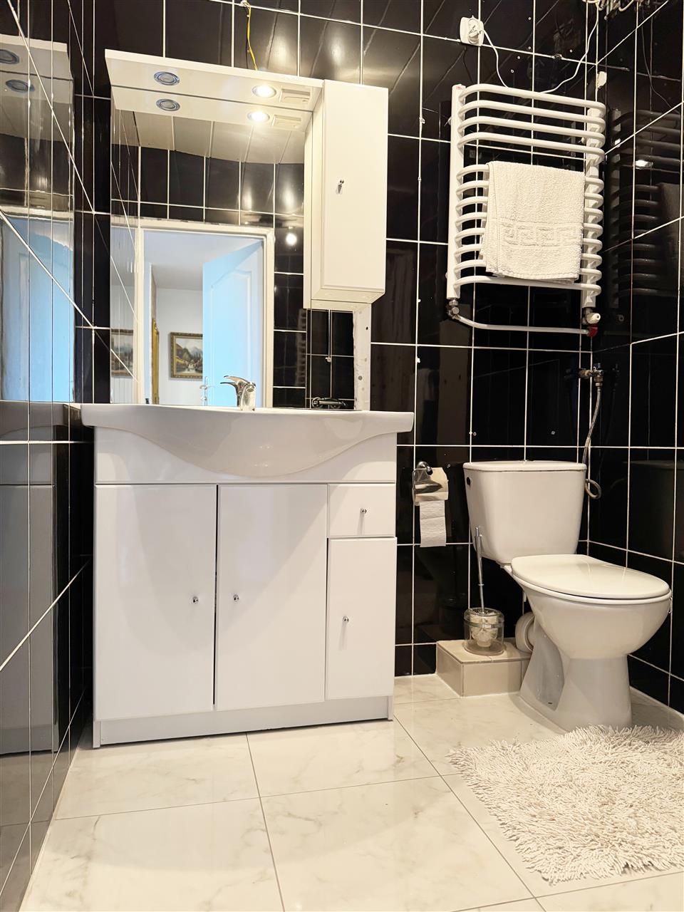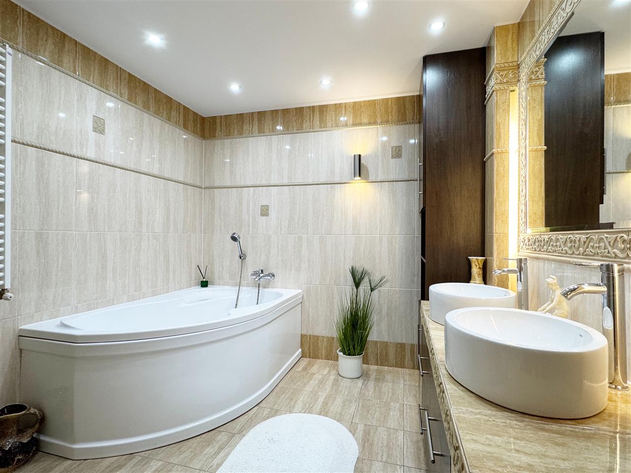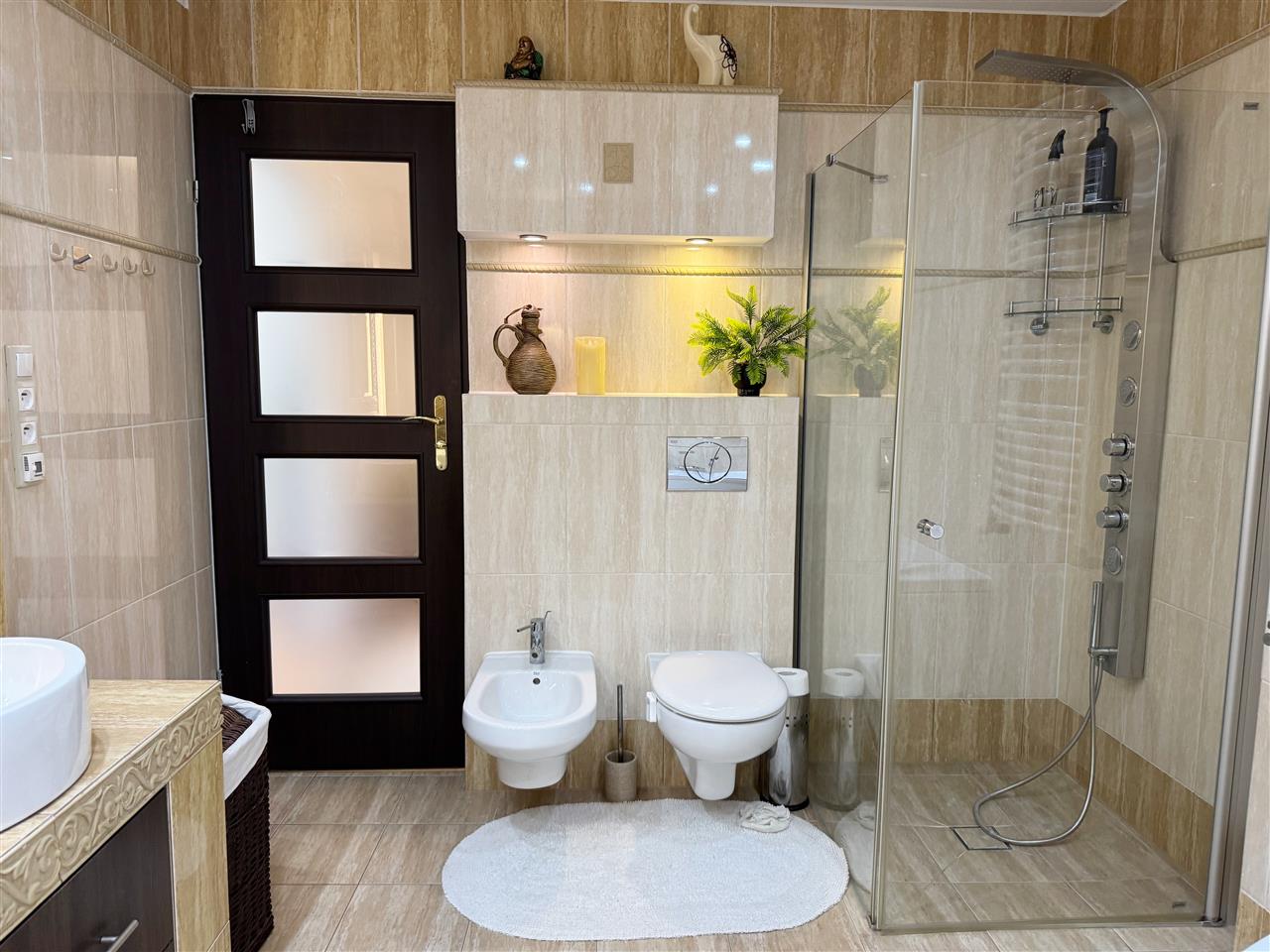 - Łazianki: glazury + terkoty (w dwóch łaziankach kabiny prysznicowe w jednej wanna).
