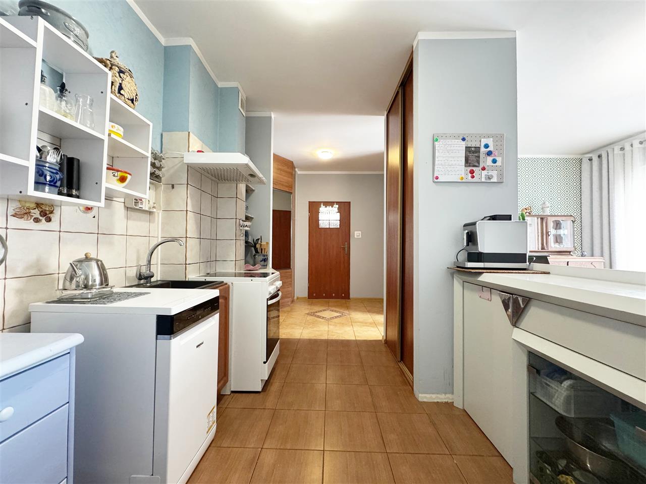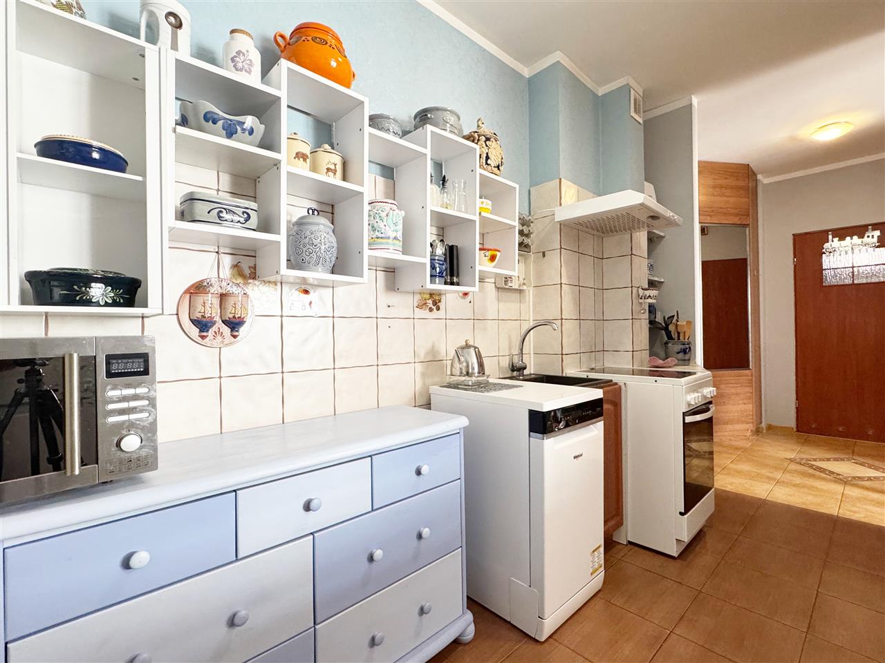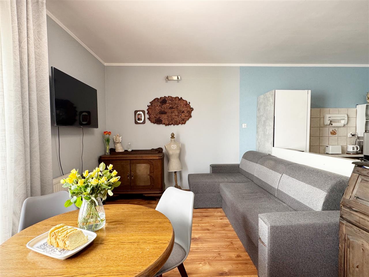 Kuchnia: szafki kuchenne, sprzęt AGD: lodówka z zamrażarką oraz kuchenka elektryczna z piekarnikiem, szafa w zabudowie pozostają na wyposażeniu nieruchomości.