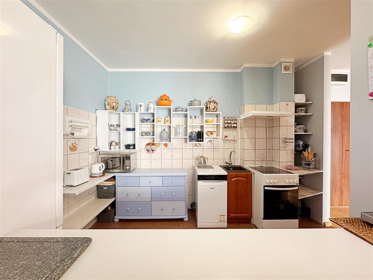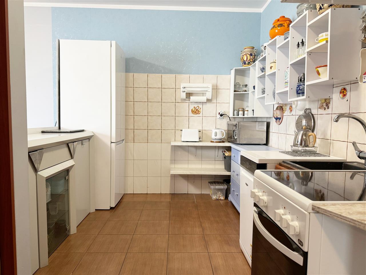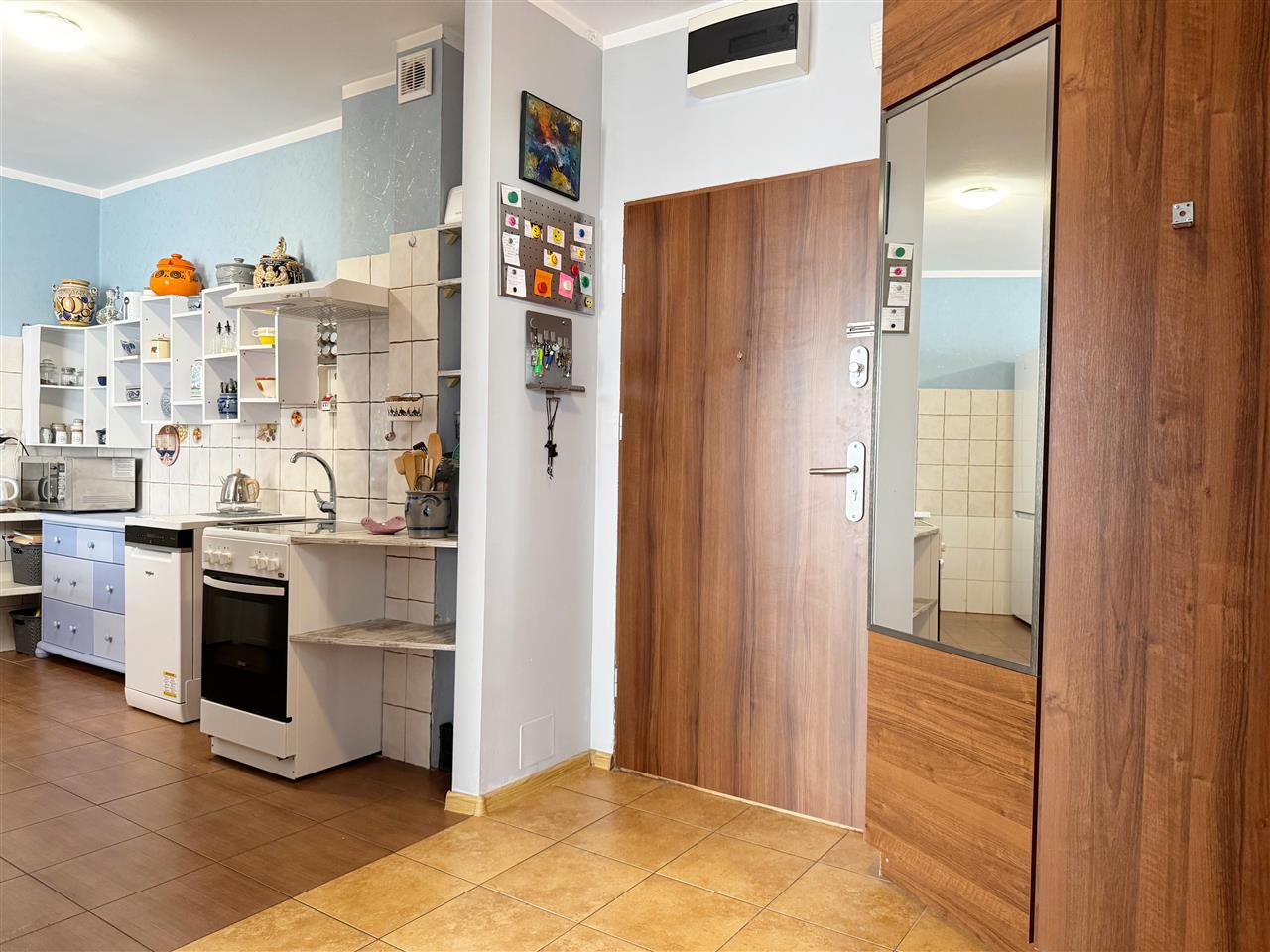 Kuchnia: szafki kuchenne, sprzęt AGD: lodówka z zamrażarką oraz kuchenka elektryczna z piekarnikiem, szafa w zabudowie pozostają na wyposażeniu nieruchomości.