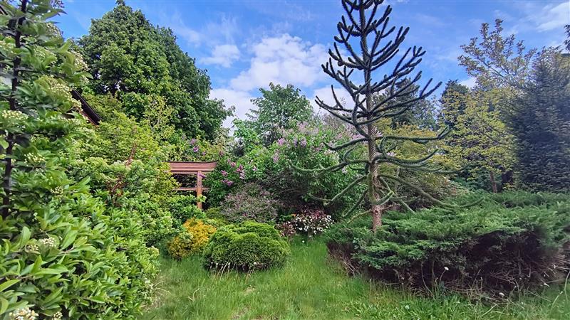 Działka o powierzchni 680m2, w kształcie zbliżonym do prostokąta, w całości ogrodzona, trawnik i nieliczne nasadzenia w tym: piękne, wieloletnie magnolie, azalie japońskie, różaneczniki, lilaki, kalina, egzotyczna kilkumetrowa arukaria oraz krzewy, uzbrojona jest we wszystkie media, budynek wyposażony w instalację elektryczną, wodną, kanalizacyjną i gazową.