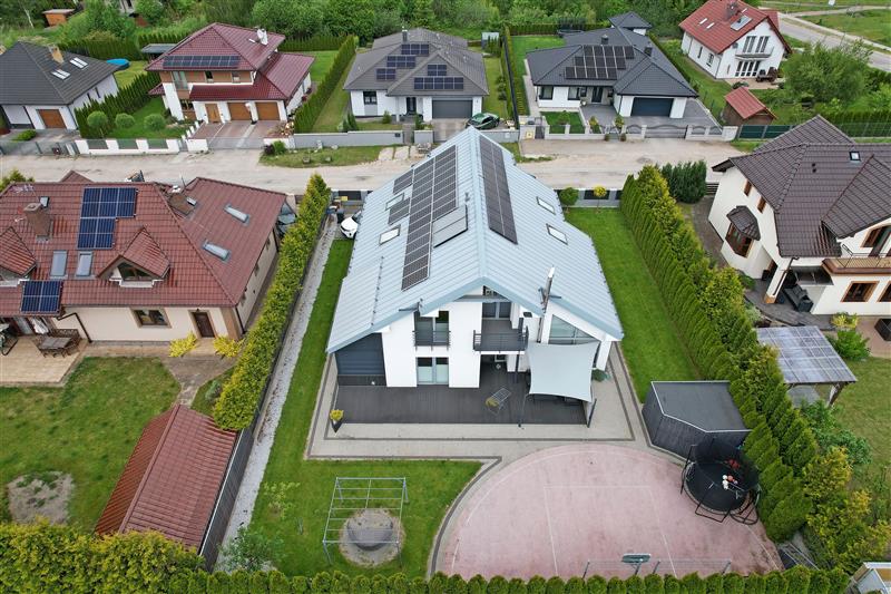 W salonie oraz 3 górnych sypialniach zamontowano klimatyzację. Jest tu również instalacja alarmowa, rekuperacja, zmiękczacz wody, odkurzacz centralny oraz wbudowane nagłośnienie w salonie.