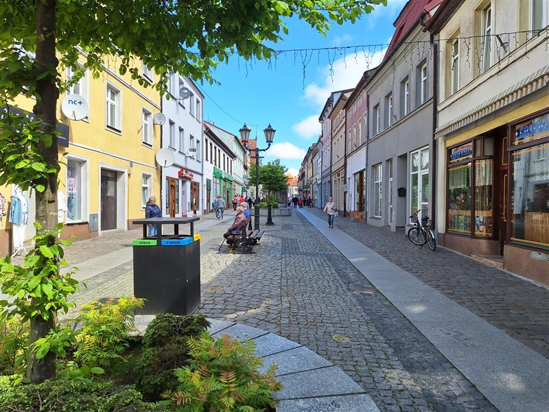 Deptak ulicy Powstańców Warszawskich prowadzi od Bramy Kamiennej (Baszty) przez średniowieczny rynek, aż do mostu na Rzece Wieprzy.