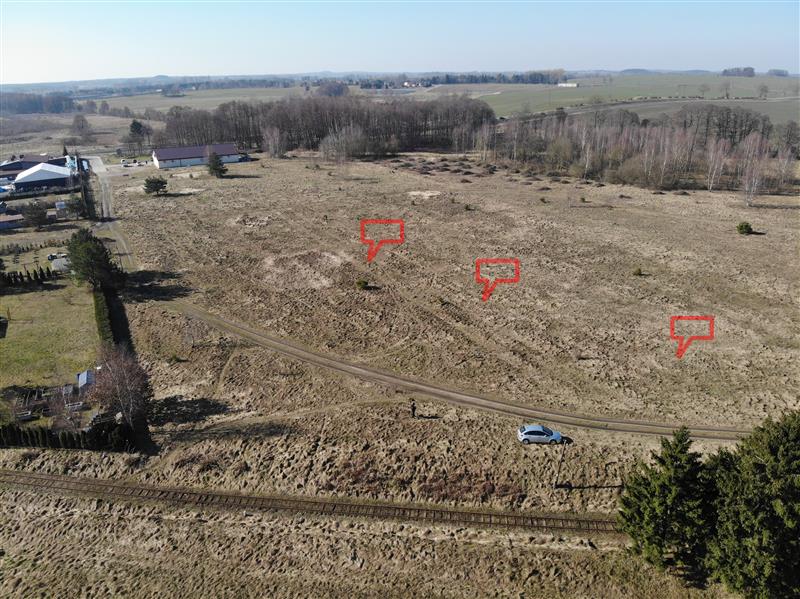 - Działka 81/8: powierzchnia 863 m2, współrzędne GPS: 54.137497, 16.283973?, (na zdjęciu czerwona)