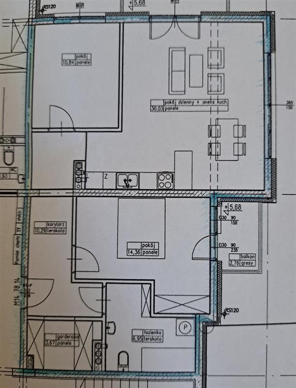 W budynku znajduje się podziemny parking. Mieszkanie dwustronne. Pokoje kolejno o pow.: pokój- 10,84m2, pokój z aneksem - 30,03m2, pokój - 14,36m2, korytarz - 10,29m2, garderoba - 3,67m2, łazienka z wc - 6,95m2. Wystawa okien - północ i wschód.