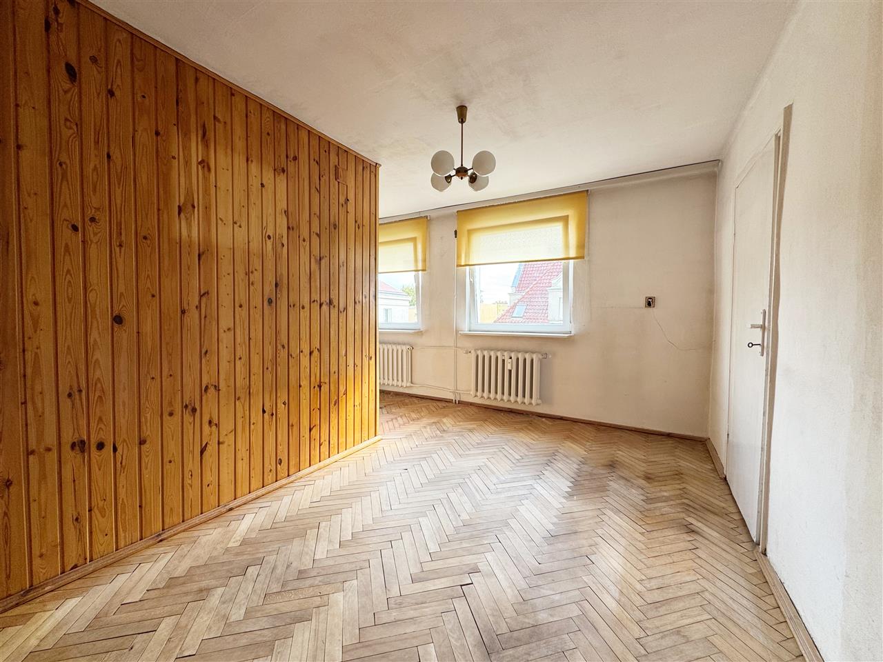 W pokojach: na podłodze parkiet, ściany: malowane oraz boazeria.