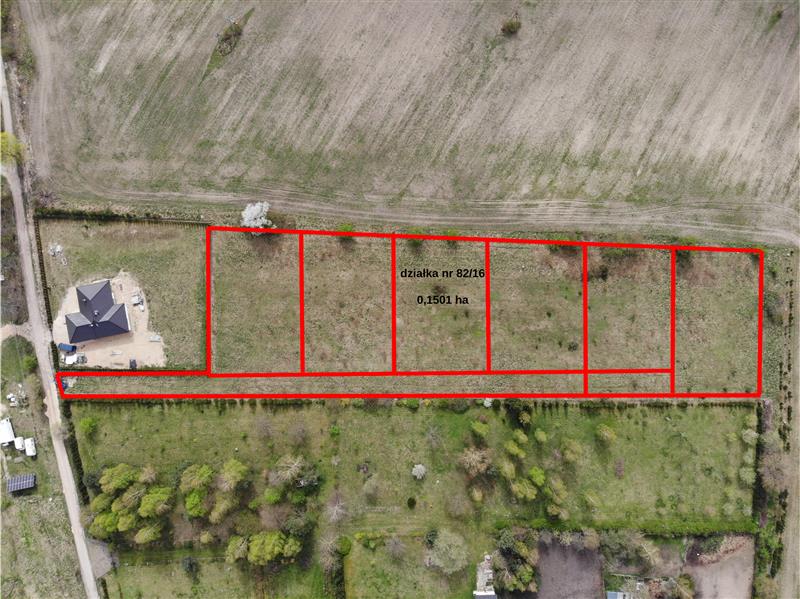 - działka nr 82/16 pow. 0,1501 ha cena  90 000 zł