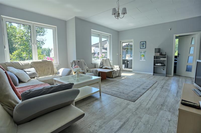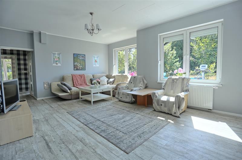 przestronny salon z wyjściem na taras – idealne miejsce na odpoczynek i spotkania rodzinne,