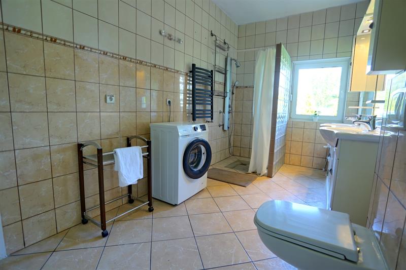 Na posesji znajduje się również mniejszy domek o powierzchni 18,83 m2, w pełni wyposażony w pokój i łazienkę. To świetne rozwiązanie jako domek gościnny, miejsce dla dorosłego dziecka, gabinet do pracy zdalnej czy przestrzeń pod wynajem.