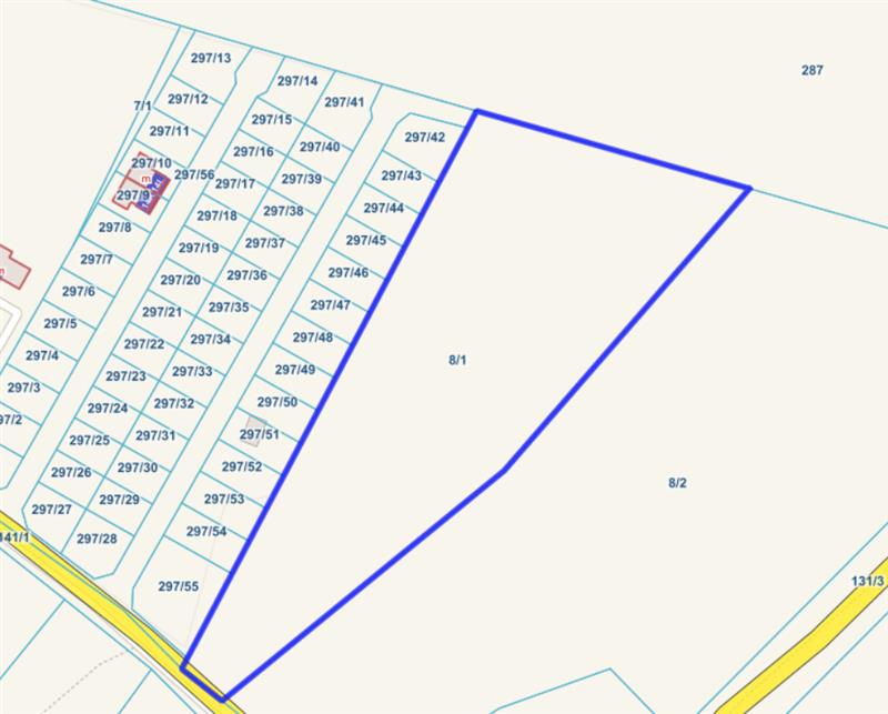 W sąsiedztwie działka podzielona na mniejsze. Na części działek stoją domy.