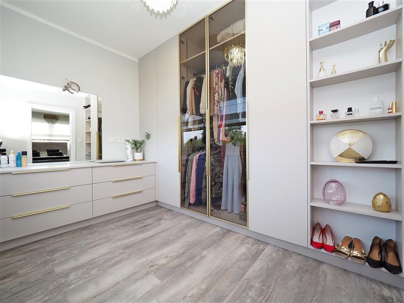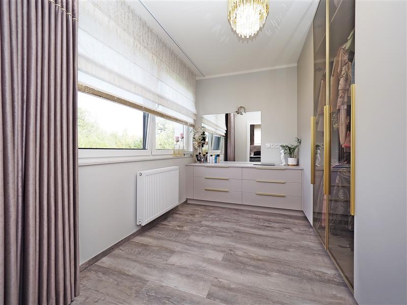 - cztery pokoje, z czego jeden został zaadaptowany na garderobę z wejściem od sypialni,