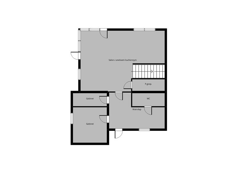 - 2 gabinety pod działalność zaadaptowowane w miejscu garażu (brama garażowa została),