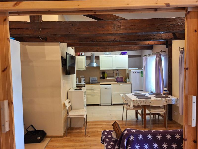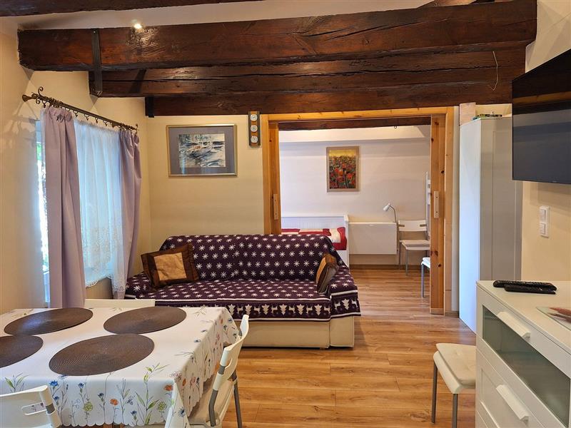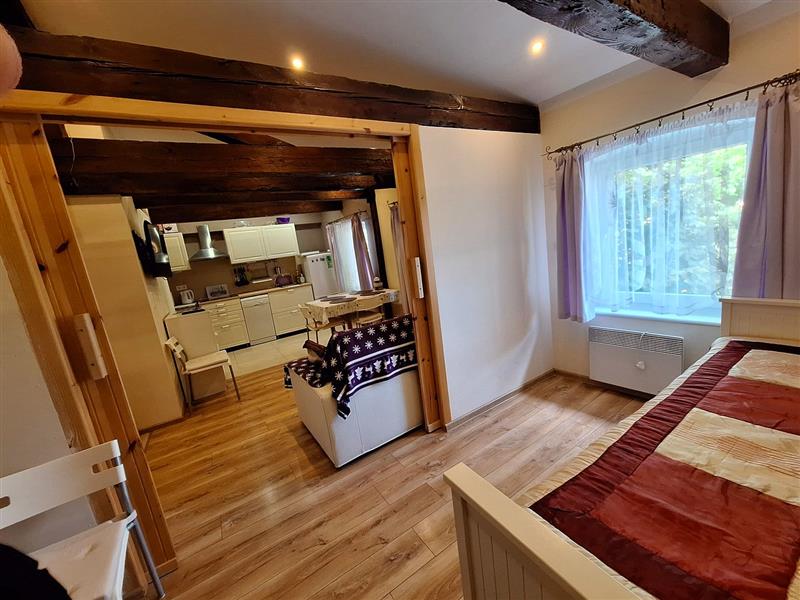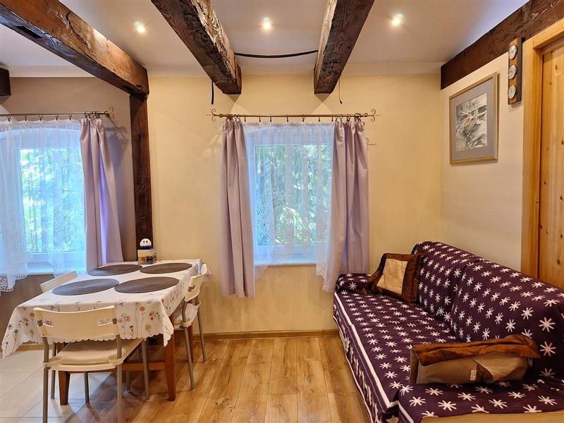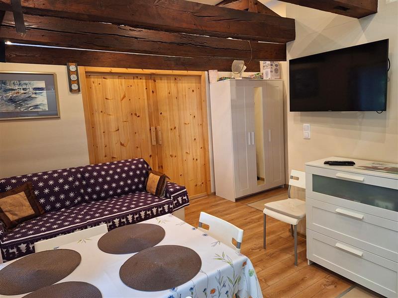 • przestronnego pokoju dziennego z aneksem kuchennym i częścią jadalnianą,