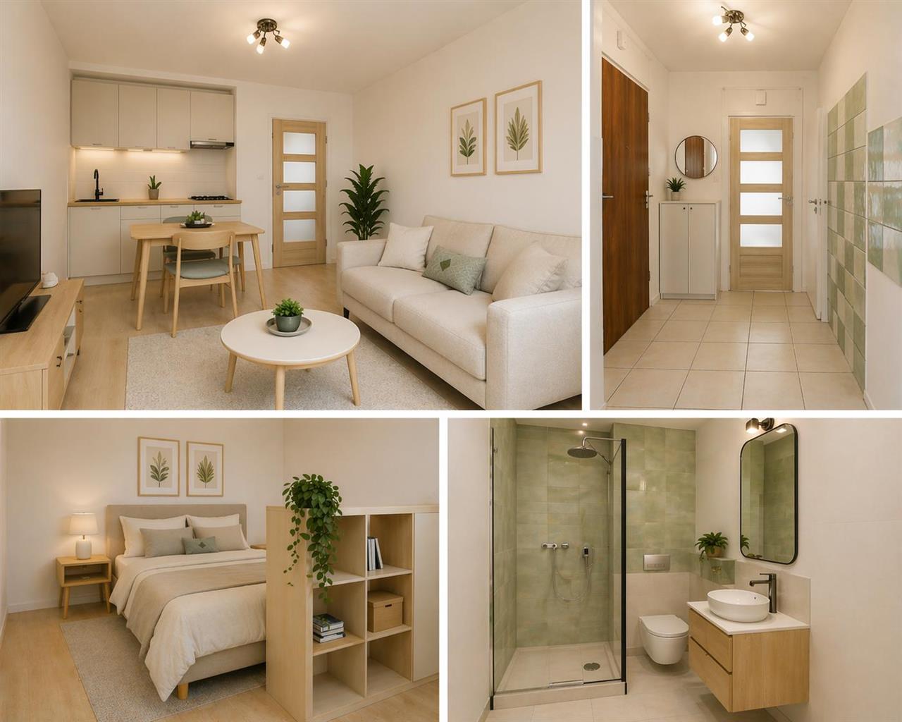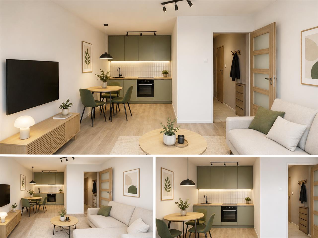 - Przedstawione pierwsze zdjęcie przedstawia przykładową wizualizacje mieszkania.