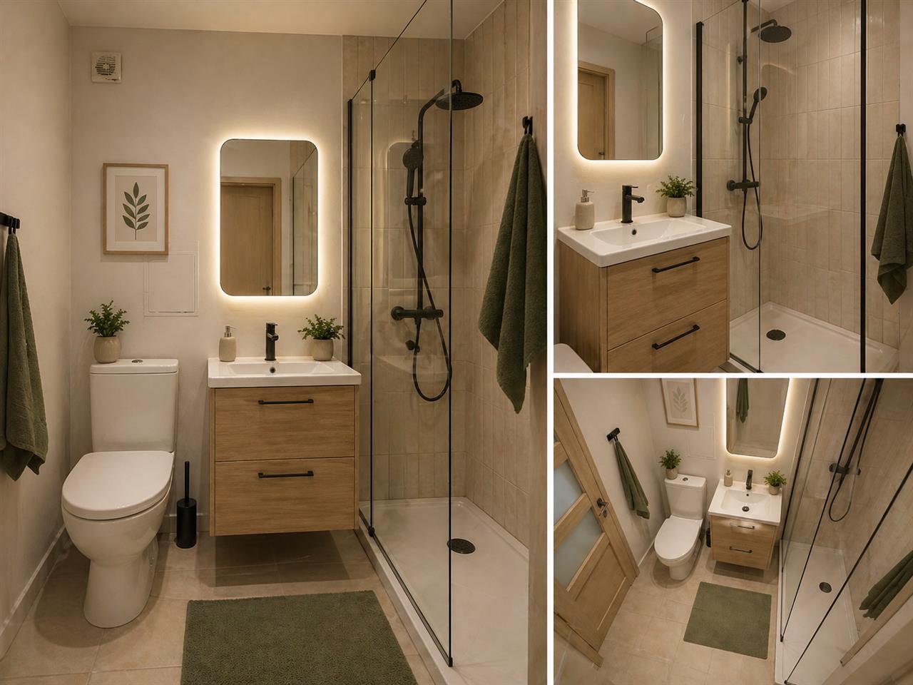- Łazienka połączona z wc: wanna, wc, glazura + terakota.