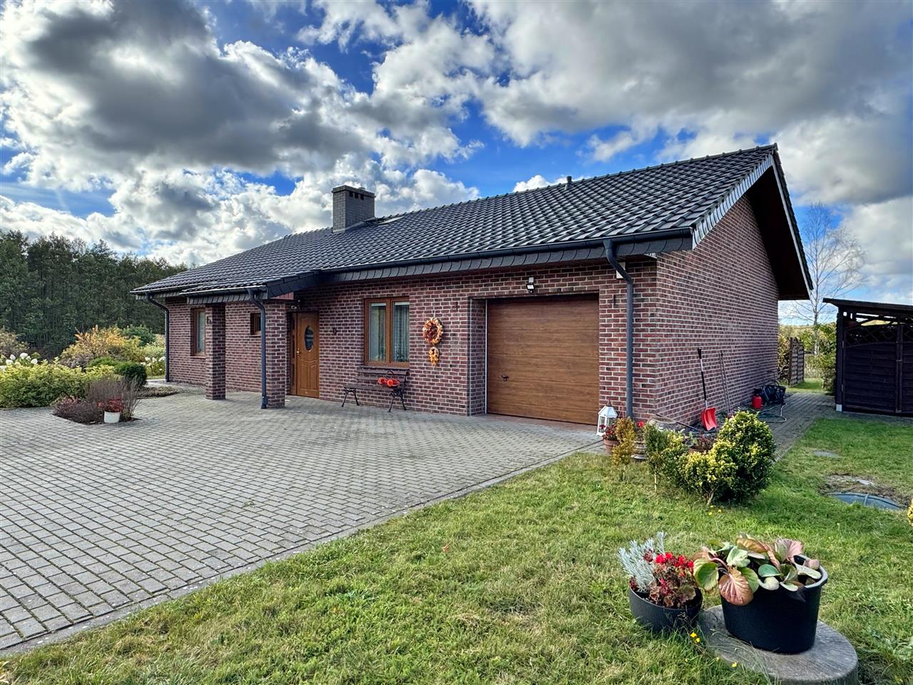 - Nieruchomość posiada liczne nasadzenia i krzewy, wydzielone miejsce na ogródek przydomowy.
