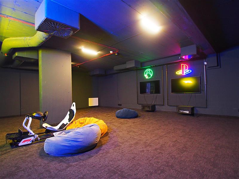 Dla dzieci wewnątrz budynku kilka sal zabaw, boisko do koszykówki, sala do gier komputerowych.