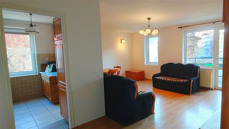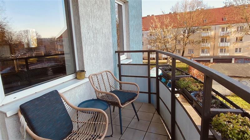 Mieszkanie dwustronne, dobrze doświetlone, z oknami PCV, wyróżnia się funkcjonalnym układem pomieszczeń.