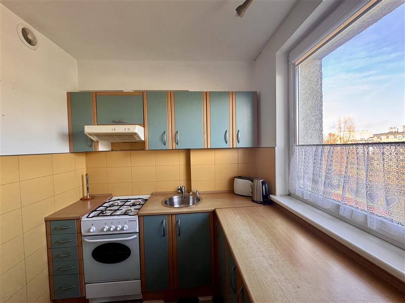 Funkcjonalny rozkład pomieszczeń- salon połączony z wyjściem na balkon, osobna kuchnia, sypialnia oraz łazienka z wc, prysznicem.