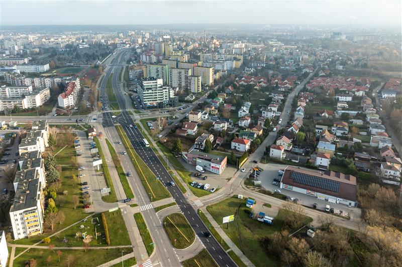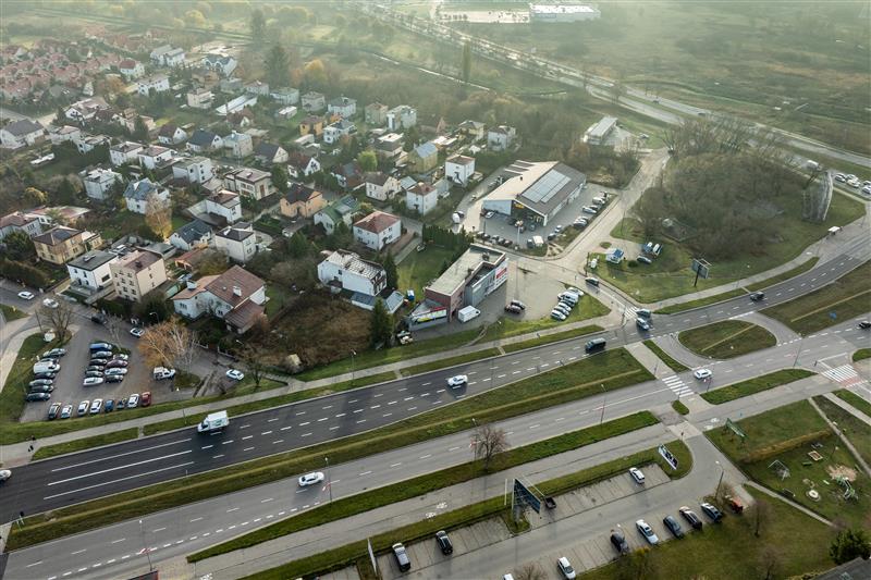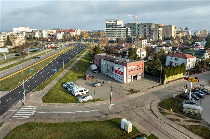 Nieruchomość jest doskonale skomunikowana – w sąsiedztwie znajdują się przystanki komunikacji miejskiej, a sprawny dojazd drogami głównymi zapewnia szybkie połączenie z centrum miasta i pozostałymi dzielnicami. Lokalizacja umożliwia także łatwy wyjazd w kierunku tras regionalnych i krajowych.