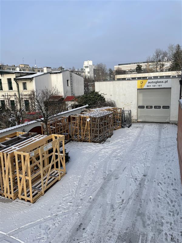 - Część frontowa: na parterze znajduje się biuro obsługi klienta, połączone z pomieszczeniami warsztatowymi obecnie wykorzystywane do wymiany szyb na trzech stanowiskach, na piętrze dostępne są pomieszczenia biurowe z zapleczem socjalnym w stanie do wykończenia, drugie piętro zaadoptowane pod pomieszczenia biurowe. Osobna klatka schodowa umożliwia wykorzystanie nieruchomości pod różne działalności gospodarcze, osobne opomiarowanie elektryczne oraz osobne ogrzewanie gazowe dla parteru i pozostałych pięter.