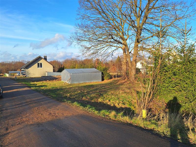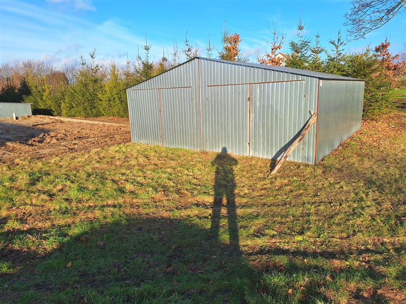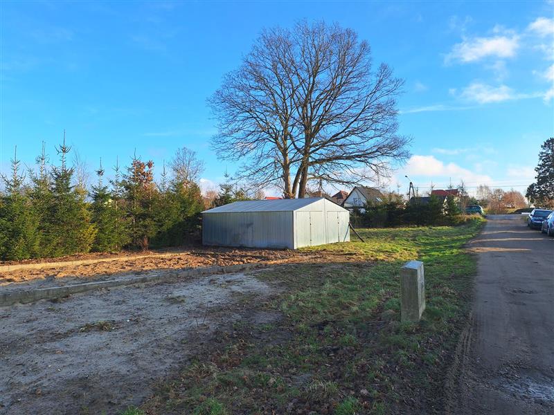 Dodatkowo na posesji znajdują się fundamenty budynku gospodarczego, który zgodnie z założeniem właściciela miał pełnić funkcję warsztatu oraz duży, dwustanowiskowy garaż blaszany, zapewniający wygodne miejsce do parkowania lub dodatkowej przestrzeni gospodarczej.