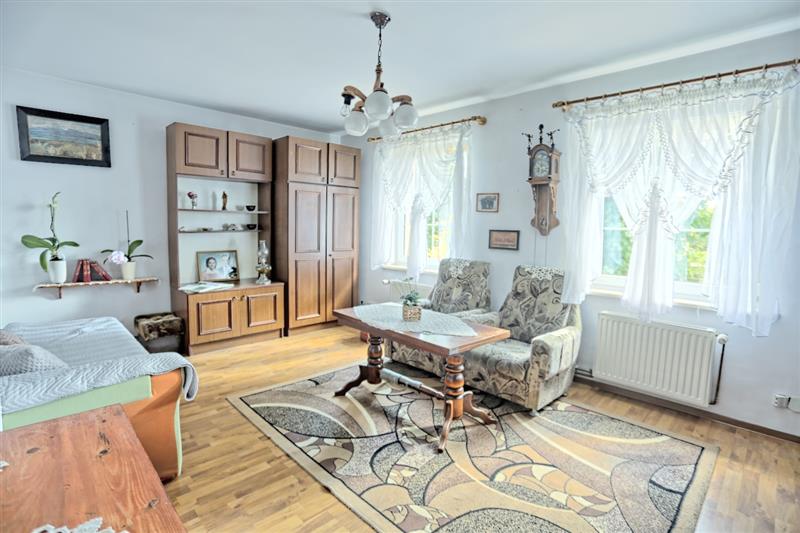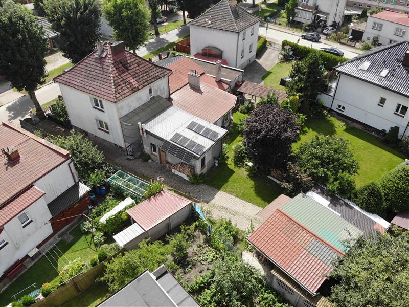 Dodatkowo w skład nieruchomości wchodzą drewniany budynek garażu/ magazynu znajdujący się za domem o powierzchni około 35 m2,  oraz budynek użytkowy o powierzchni użytkowej 31,98 m2, w którym można prowadzić sklep, lokal usługowy, lub zaaranżować na małą kawalerkę pod wynajem (znajduje się w dobudowanej części budynku, za apteką)