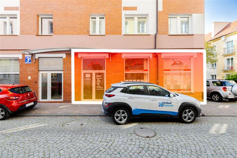 Do wynajęcia lokal użytkowy o powierzchni 75,43 m2 położony na parterze w budynku mieszkalno - usługowym w ścisłym Centrum Koszalina, przy ulicy Bogusława II.