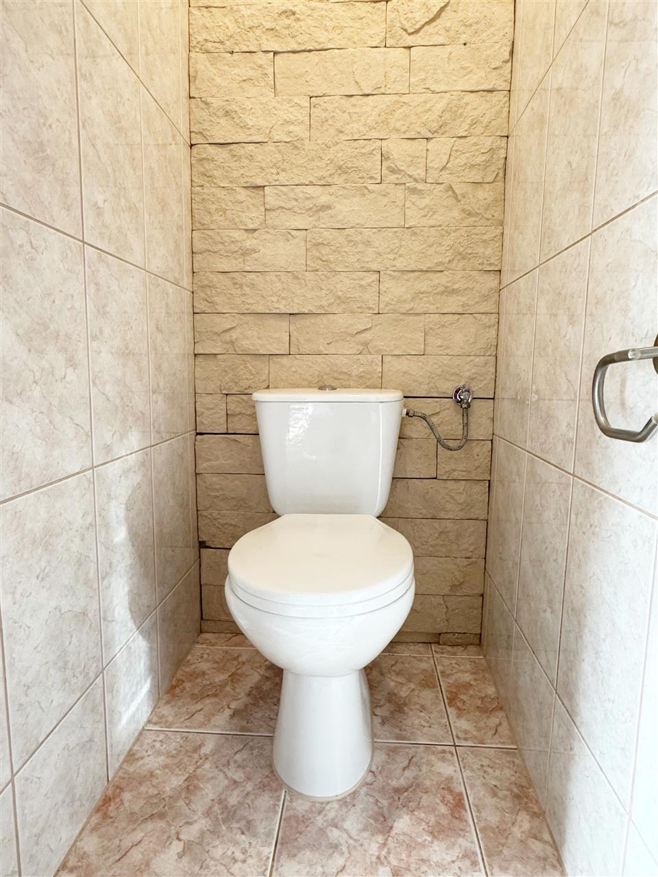 Łazienka: glazura + terakota, wanna, umywalka, lustro.