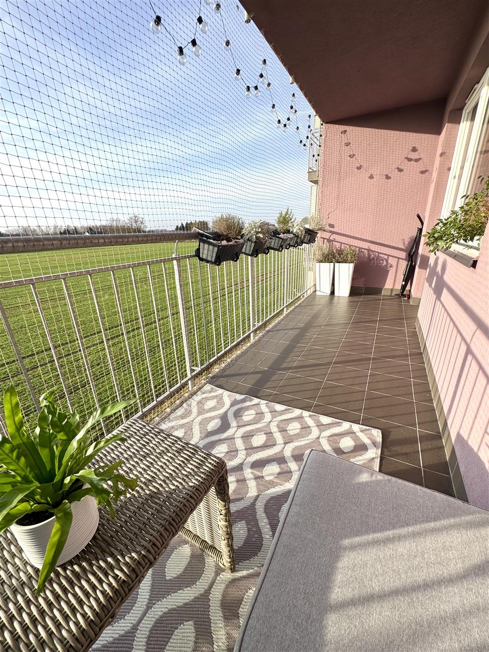 duża loggia o pow. 9,10m2 - z której rozpościera się piękny widok na tereny zielone – idealne miejsce na poranną kawę lub podziwianie malowniczych zachodów słońca.