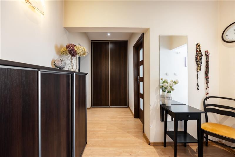 • szeroki funkcjonalny korytarz z szafą w zabudowie stałej