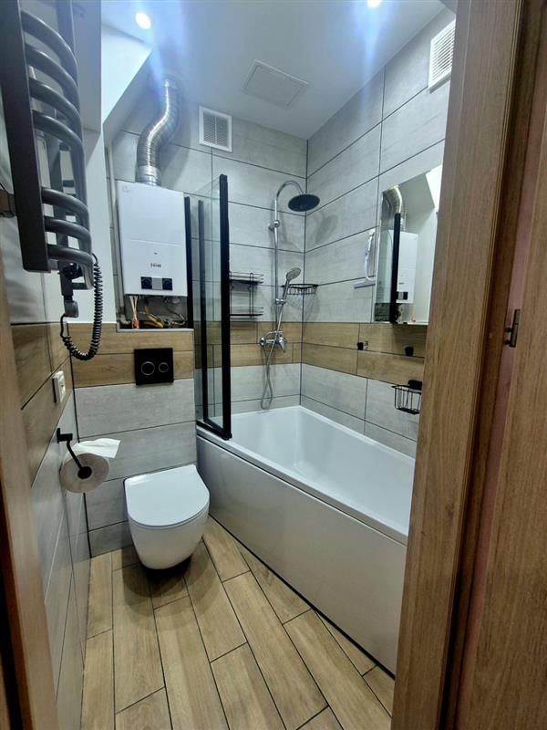Ogrzewanie z ciepłociągu, ciepła woda z piecyka. Na podłogach panele, ściany  gładzie malowane, meble w kuchni zabudowa w cenie(mini zmywarka, lodówka, płyta,           mikrofalówka, płyta gazowa, piekarnik, okap). Okna 3 szybowe PCV. W budynku  światłowód. Oglądanie z pośrednikiem, oferta na wyłączność.