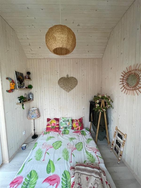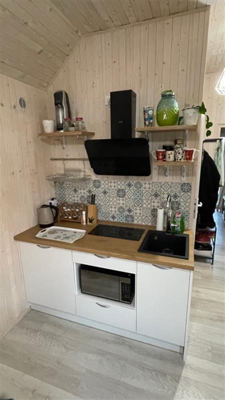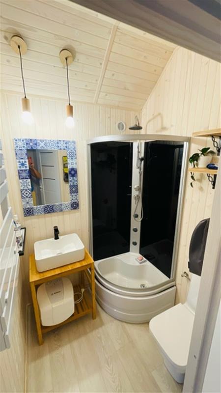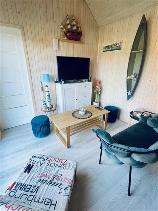 Domek został wybudowany na zgłoszenie i ujęty w ewidencji geodezyjnej. Wnętrza urządzono z dbałością o detale, z dominacją naturalnego drewna, co tworzy przytulny i ciepły klimat. Nieruchomość oferuje umeblowane pomieszczenia, łazienkę oraz funkcjonalną kuchnię wyposażoną w niezbędne AGD. Komfort użytkowania zapewniają m.in. klimakonwektor marki Gree, dostęp do WiFi oraz system kamer IP.