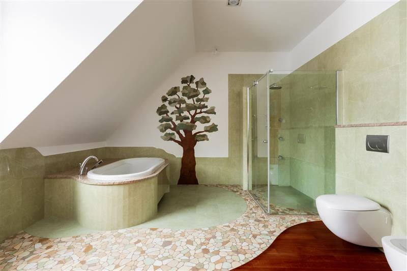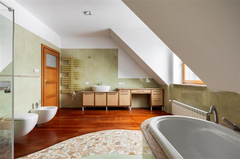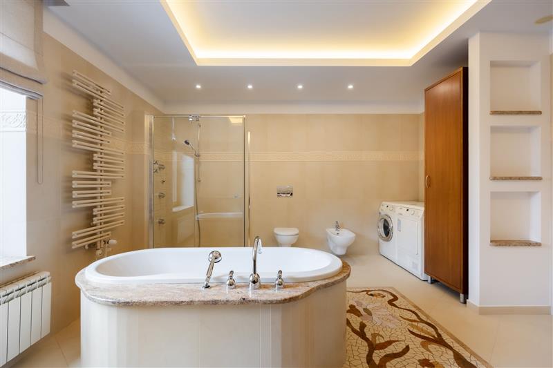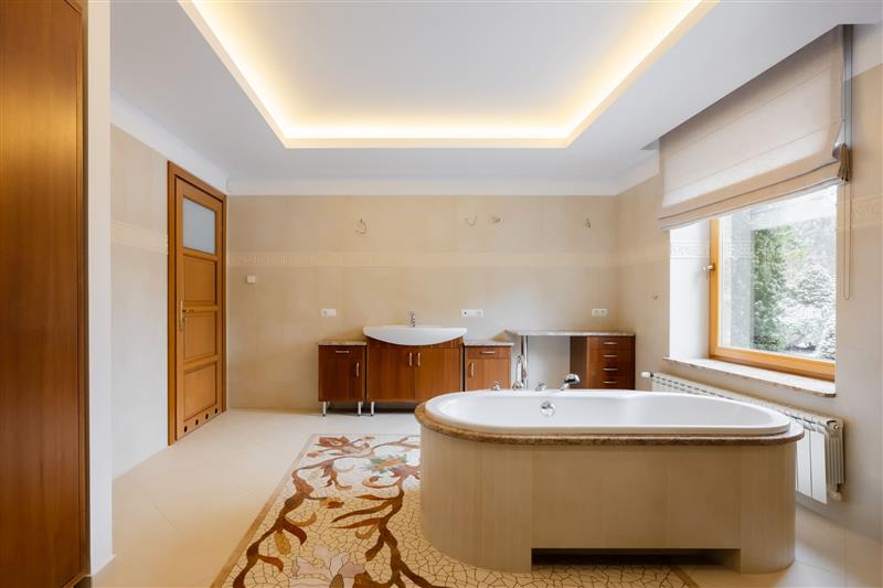 3. Łazienka (wanna, z osobną dużą kabiną prysznicową z hydromasażem, wc, bidet, umywalka oraz szafka z blatem marmurowym)