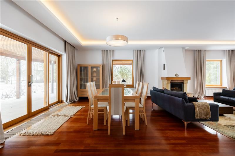 3. Salon – otwarte wejście z hallu, połączony z kuchnią pełen obieg słońca, wyjście na duży taras i ogród, okna z 3 stron, kominek. Dla amatorów osobnej kuchni jest możliwe bardzo łatwe oddzielenie jej od salonu poprzez różne rozwiązania.