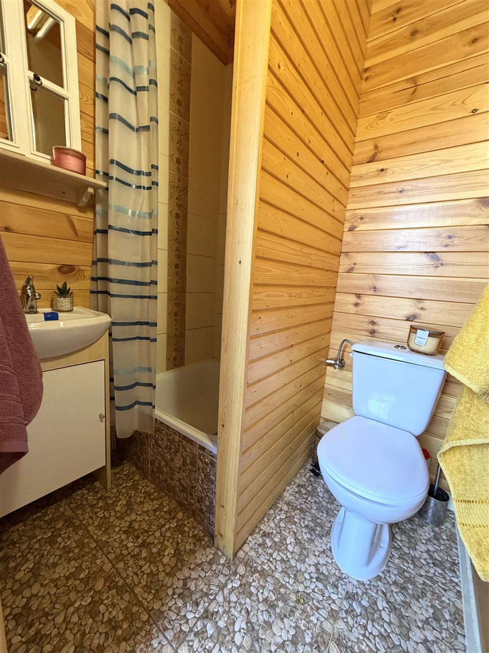- 1 budynku letniskowo-mieszkalnego o konstrukcji drewnianej, parterowy z poddaszem użytkowym wybudowany w 2018r. Całość o powierzchni użytkowej 45m2. Obiekt całoroczny z ogrzewaniem w postaci tzw. kozy.