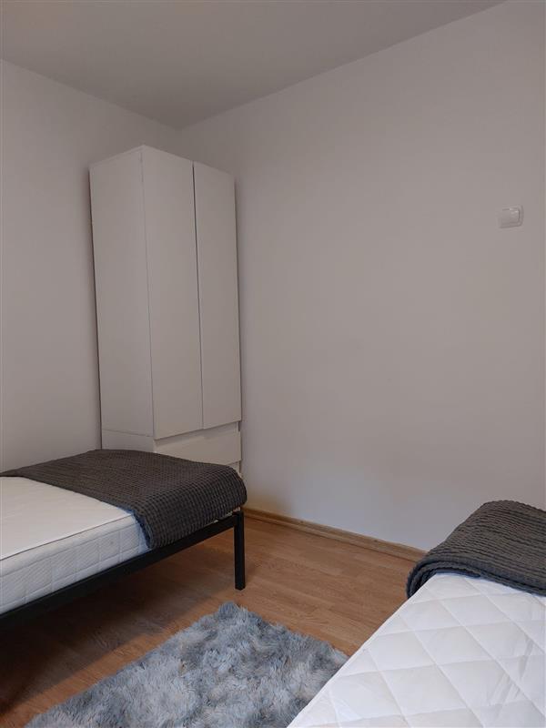 Mieszkanie składa się z salonu z aneksem kuchennym, dwóch pokoi ( w każdym z nich dwa pojedyncze łóżka), łazienki oraz wiatrołapu. W kuchni płyta elektryczna, mikrofalówka, zlew dwukomorowy, lodówka podblatowa.