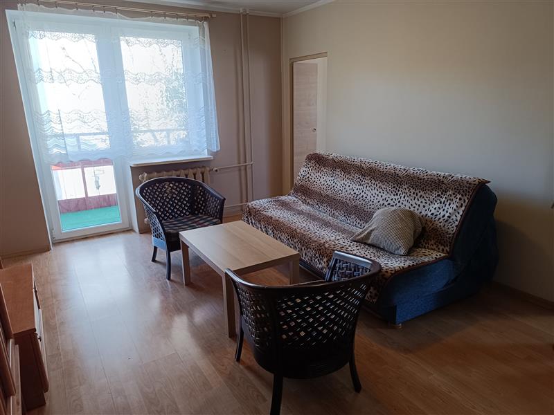 Mieszkanie 2 pokojowe z dużą loggią. W pokojach na podłodze panele, okna PCV + rolety.